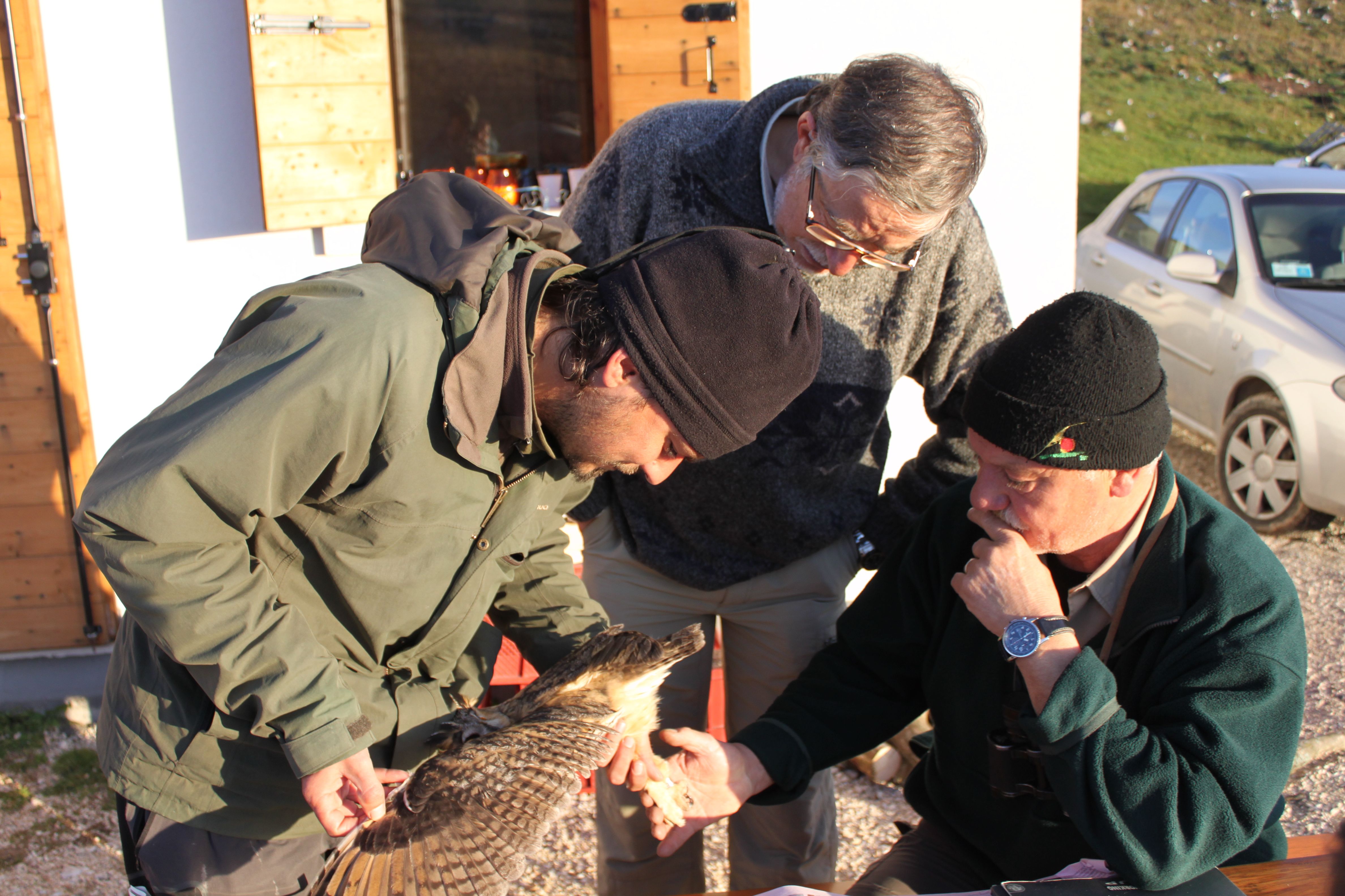 Un’altra alba magnifica sul monte Pizzoc quest’oggi! Ed anche un bel passo di uccelli, con vento moderato da nord-est. Il dott. Mezzavilla , in postazione per i conteggi della migrazione, ha contato più di 3000 uccelli in 3 ore! Sono passate molte peppole, frosoni, ma anche qualche fringuello, lucherini, regoli, tordele, tordi sasselli e si è sentita anche qualche cesena. Le nostre catture sono state poco abbondanti, visto il vento non favorevole, comunque abbiamo preso diverse peppole, l’immancabile gufo comune ed uno sparviere maschio adulto bellissimo! Domani sarà un’altra giornata di catture, speriamo nel bel tempo…