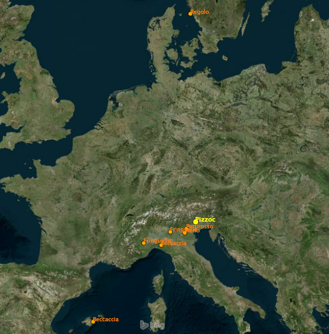 Poi due beccacce, una a Maiorca e una a Piacenza, un fringuello a Cuneo..
