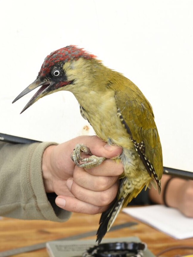 Dopo una domenica di pioggia battente dall’alba fino a sera, riapriamo le reti. Lunedì il passo è molto timido, come spesso accade dopo le perturbazioni. Catturiamo una quarantina di uccelli, con 16 specie. Passano ancora dei transahariani, in particolare stiaccini e culbianchi, ma iniziano anche a passare le specie intrapaleartiche, come il pettirosso, il tordo bottaccio, il ciuffolotto. Catturiamo una nuova specie per il Pizzoc, e cioè il picchio verde!