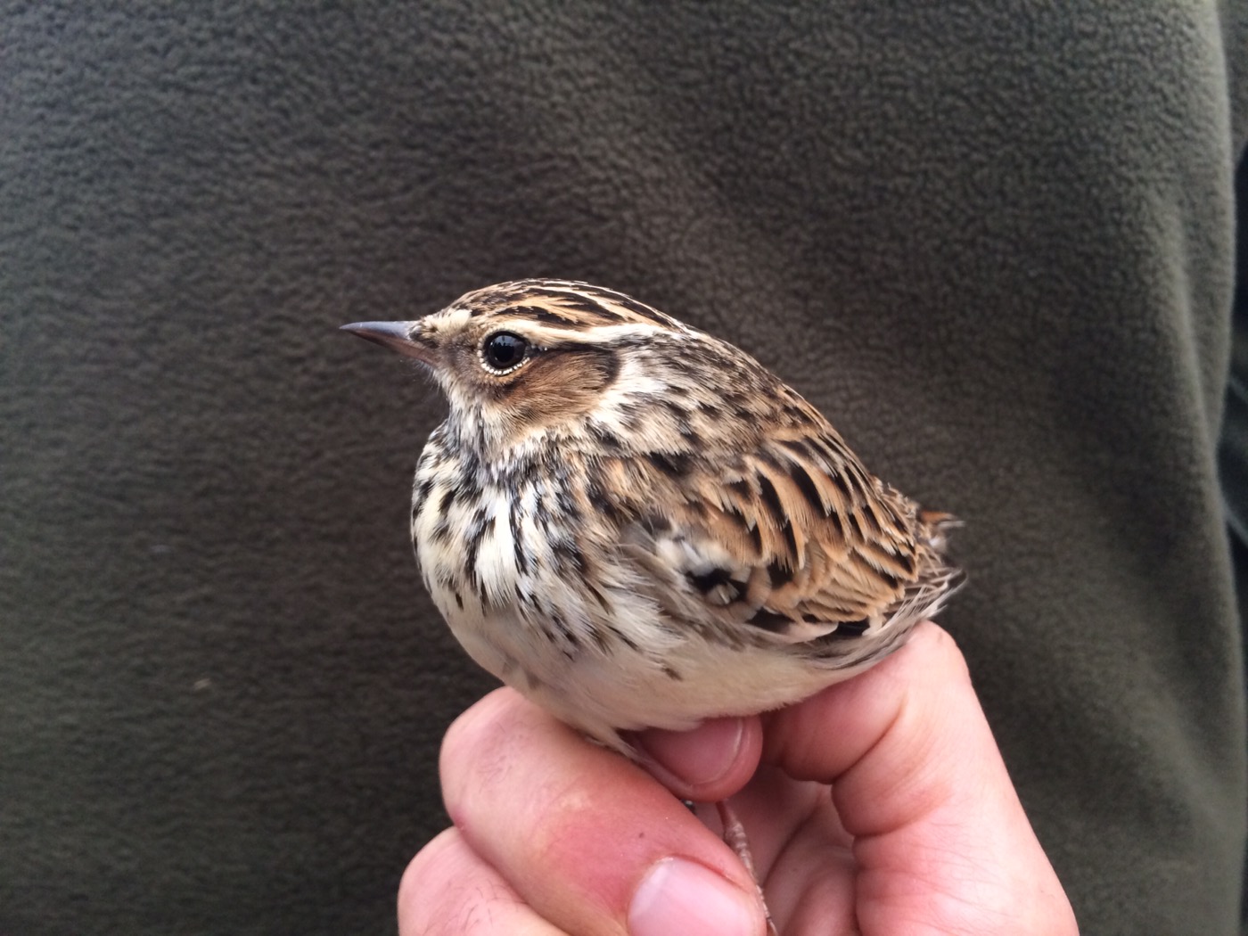 Un’altra giornata di sorprese sul Pizzoc, con la 60esima specie dell’anno e la 75esima in totale. La mattina nebbiosa ci fa temere una giornata interlocutoria, invece all’alba catturiamo molti pettirossi (78) e tordi (16), poi merli, cince more, lucherini, spazzacamini, uno splendido merlo dal collare della sottospecie torquatus (del nord ed ovest europa) – prima cattura qui al Pizzoc-. Protagonisti di giornata lo zigolo giallo e la tottavilla, quest’ultima mai catturata negli anni precedenti del progetto.