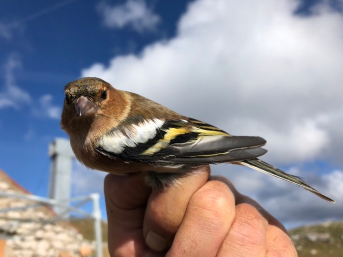 Verso le 9 dobbiamo però chiudere le reti, per poter fare in tempo a smontarle asciutte, quindi le catture sono in tutto 60, con ben 32 peppole, qualche fringuello e qualche lucherino.