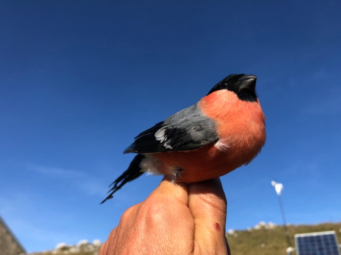 Dopo un lunedì interlocutorio, con reti a lungo chiuse per nebbia e pioggia e 18 catture in tutto, il martedì parte con i migliori auspici per la migrazione: calma di vento, cielo sereno, e molti uccelli che passano bassi sul valico.