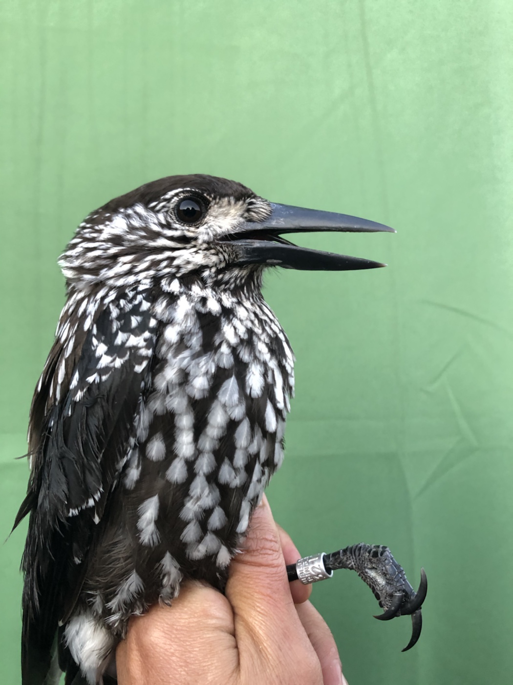 Ma la grande notizia di ieri è la ricattura di una nocciolaia con anello sloveno! Probabilmente si tratta della prima del Progetto Alpi, ed è un dato di estremo interesse che riguarda una specie i cui spostamenti si conoscono ancora poco. Speriamo di sapere presto da dove viene di preciso, di sicuro si tratta di un esemplare giovane, nato quest’anno.