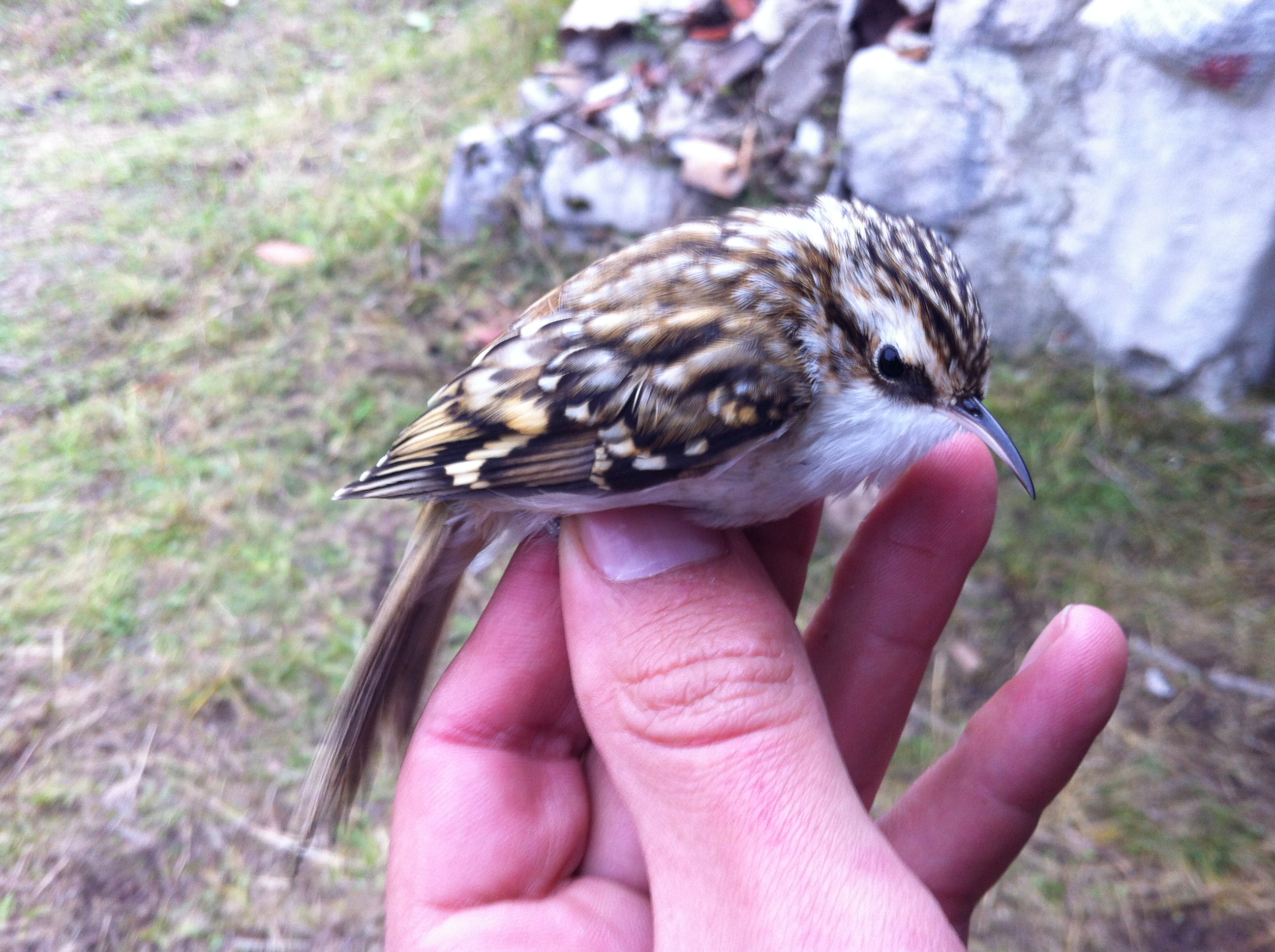 Giornata molto positiva, a tratti incredibile! 54 uccelli catturati, con ben 13 specie e 4 specie nuove per la stazione: bigiarella, luì piccolo, fiorrancino e…. un FALCO PELLEGRINO! Oltre a questo, numerosi spioncelli, tordi, pettirossi, una nocciolaia…insomma, nonostante le fatiche ci si inizia a divertire!