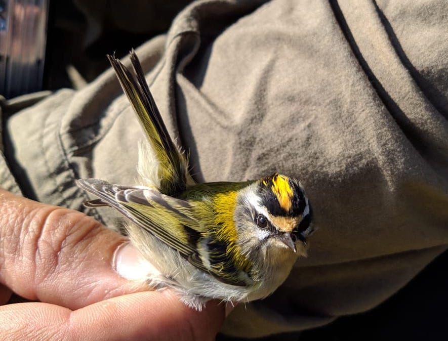 Ieri c’è stato finalmente un bel passo, con tempo bello anche se un po’ ventoso la mattina. Le specie principali in migrazione sono state il pettirosso, il fringuello, il lucherino e lo spioncello. Qualche tordo la mattina presto, e poi una bella varietà di specie, con un fanello, un rampichino alpestre e la seconda cincia dal ciuffo del Pizzoc! Le catture sono state circa un centinaio.