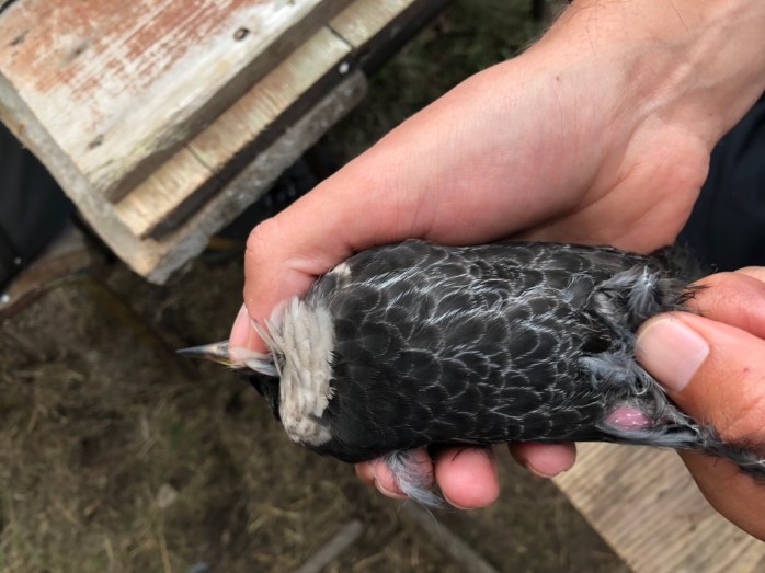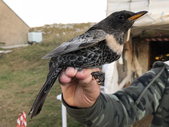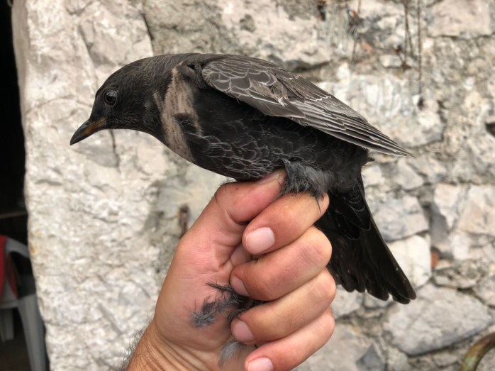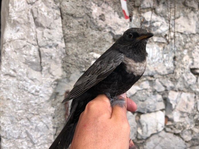 L’evento della giornata è la cattura di uno splendido merlo dal collare, questa volta della sottospecie torquatus, che non nidifica nelle Alpi ma nel nord dell’Europa ed è caratterizzato da un piumaggio più scuro.