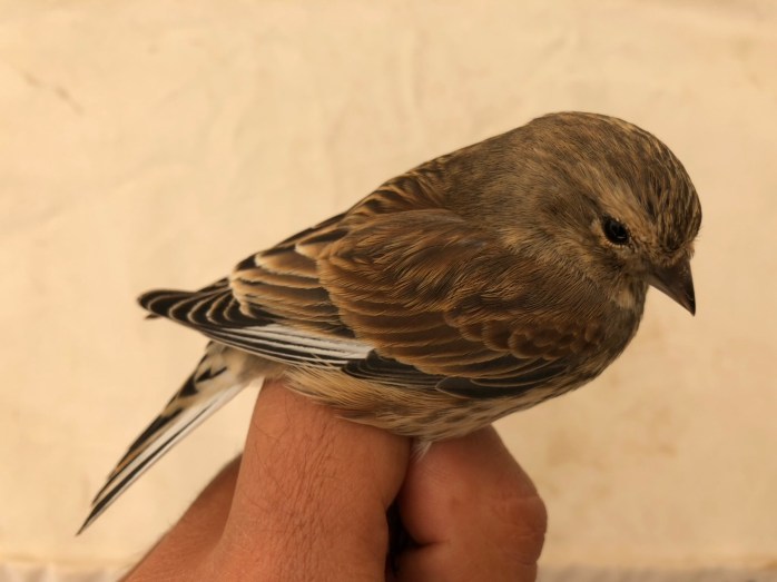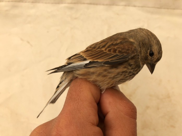 Tra le catture del 3 ottobre merita un’attenzione particolare il fanello (Carduelis cannabina), specie di fringillide che si nutre di semi in spazi aperti, incolti e pascoli. Qualche decina ne passa sempre sul Pizzoc, ma le catture sono sempre pochissime: ecco qui un bel maschio.